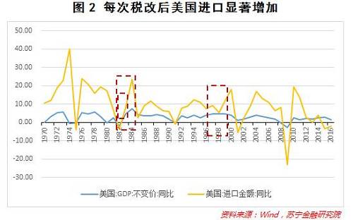短期内贸易机会增加。在消费和投资需求受到刺激时,美国的私人部门更倾向于增加进口(参见图2)。在美国最近的三次大规模减税后,进口均出现了大幅度增长。