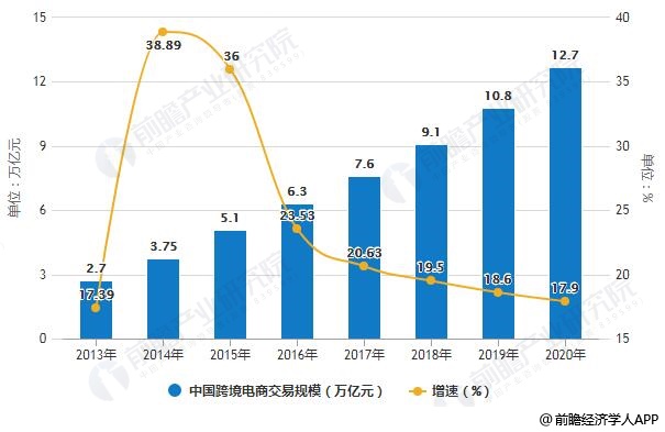 2013-2020年中国跨境电商交易规模统计及增长情况预测