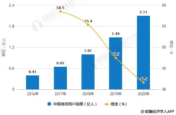 2016-2020年中国海淘用户规模统计及增长情况预测