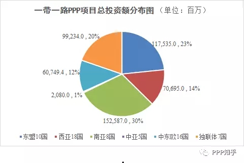 PPP知乎大数据显示:截止2017年4月底,一带一路沿线64个国家PPP项目总计865个,总投资额约5029亿美金,项目平均投资额5.8亿美元。