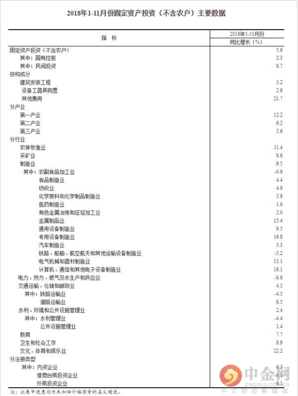 中金网汇信APP讯 : 统计局12月14日公布数据显示,1-11月,中国城镇固定资产投资同比增长5.9%,增速提高0.2个百分点,好于市场预期的5.8%。