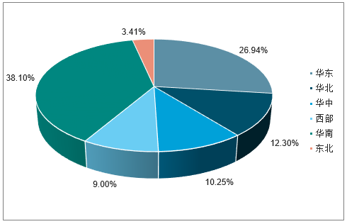 我国华东地区数字政府行业占比26.94%,华中占比10.25%,华南占比38.1%,华北地区占比12.3%,东北地区占比3.41%,西部地区占比9%。