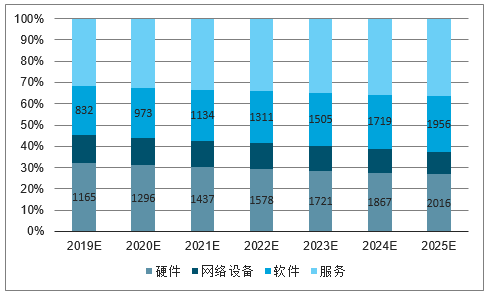其中,软件和服务是未来几年主要增长的细分领域,而网络设备和硬件随着基础设备的完善,增速将不断减缓。
