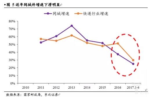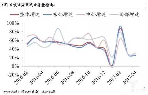 对于行业数据,市场困惑最大的是为什么17年业务量增速会大幅放缓?(16年增速51%,17年Q1+32%,3、4月份增速跌破30%),在近期路演交流中该问题也被多次提及,而目前市场的主流的解释是: