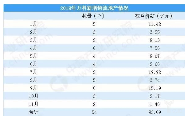 今年以来,万科新增54个物流地产,权益溢价款83.69亿元,物流地产集中在上海、宁波、杭州、天津等地区。今年万科围绕物流地产的一系列动作中,最引人关注的当属7月的一起并购案——万科将太古实业旗下的太古冷链物流资产包(上海、广州、南京、成都、厦门、廊坊、宁波在内的7座冷库)收入囊中。