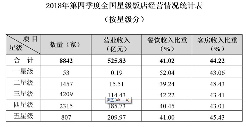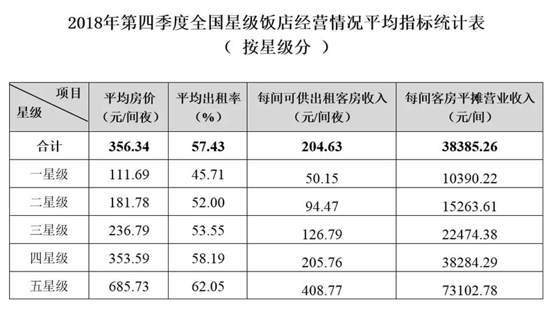 2018年第四季度全国星级饭店统计公报发布