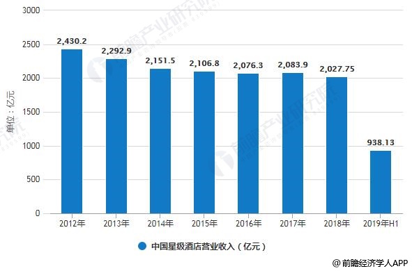 2、2019年上半年三星级以上酒店营收都超过200亿元