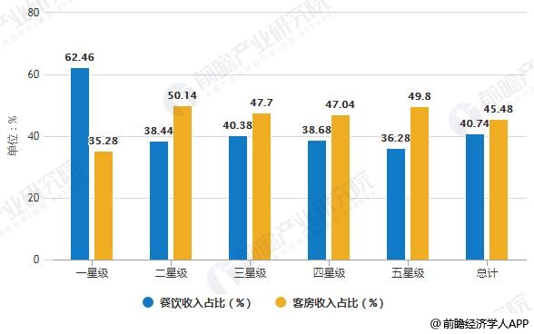 2019年H1中国各星级酒店餐饮收入、客房收入占比统计情况