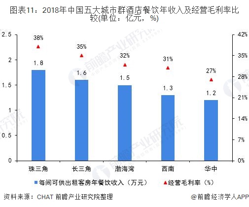 而在客房与餐饮收入双高以及员工成本更为节约的多重助力下,珠三角都市圈顺利成为中国高端酒店运营效率最高的区域,以38%的平均经营利润率领军中国市场。