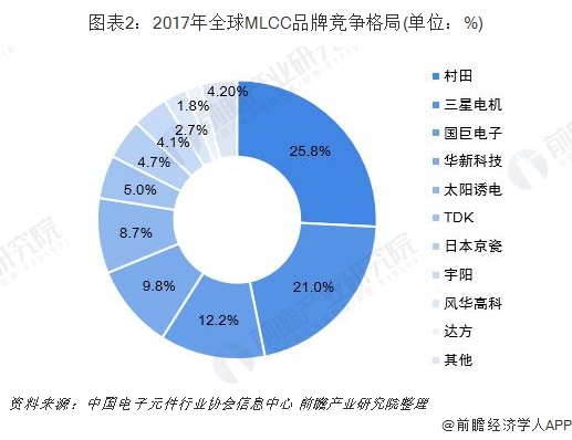 目前全球消费品MLCC主要供应商集中在日本、韩国等国家,日系厂商占有明显优势。其产品覆盖小尺寸低容、小尺寸高容、大尺寸低容和大尺寸高容四个领域。核心技术被京瓷、村田为代表的日、韩系企业掌握。在全球前十大MLCC厂商中,有4家为日系厂商,这4家日系厂商全球市场销量占有率达到44%,主要原因在于日系厂商在尖端高容量产品、陶瓷粉末技术和产能规模上领先其他国家和地区。不过,近几年中国厂商不断实现技术突破,目前成功挤进全球前十名,比如华新科技、宇阳等,占全球市场的份额分别为9.8%和4.1%。