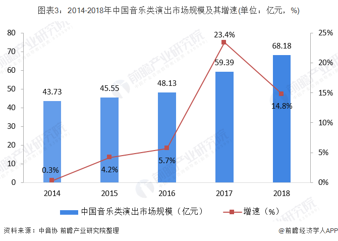 2、音乐演出市场规模近70亿,消费群体持续年轻化