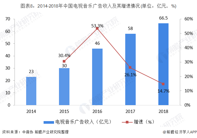 7、电视音乐广告收入快速增长,网络音乐综艺成长迅速