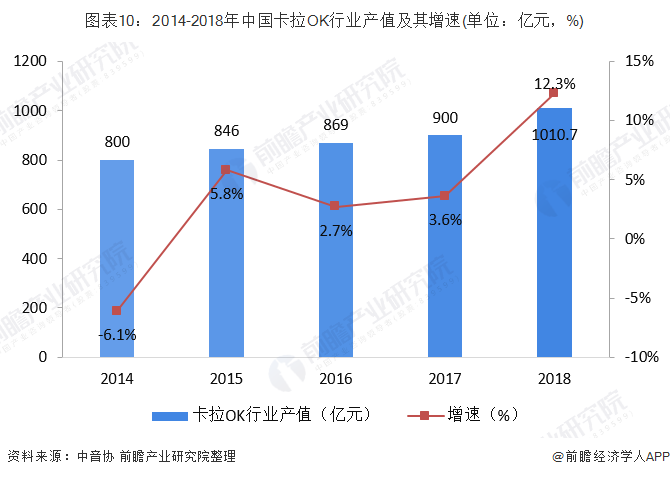 2018年卡拉OK产业总规模达到1010.7亿元,同比增长12.3%。其中传统KTV市场迎来了企稳回升,在线KTV增长迅速。2018年中国线上K歌软件月平均总使用次数达47.35亿次,迷你歌咏亭市场规模达13.9亿元,同比增长15.1%,投放设备数达7万台,同比增长25%。