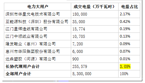 电力市场也基本满足二八规律,即20%的用户消费了近80%的电量,电力特大用户会开展电力直接交易,或者自己成立售电公司,根据广东省2017年长协电量交易结果来看,广东省1746家直购电大用户只有7家电力大用户不选择售电公司代理长协电量,且只占到交易电量总量的3.08%,因此售电公司代理大用户在广东省已经成为主流,如表2。一般大用户和中等用户会让售电公司代理,打捆的形式去市场购买低价电。现阶段用电量较小而且电价较低的普通居民用户不会受到售电公司青睐,如图5。
