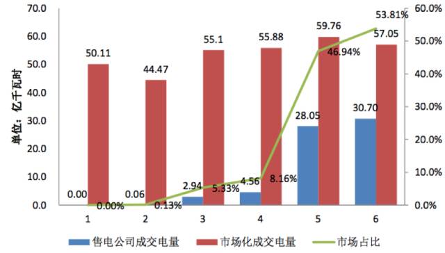 6、云南售电公司增长迅速,成交电量超过市场电量的一半