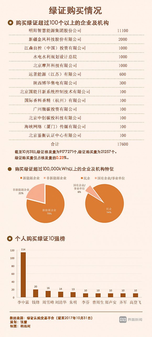 购买绿证的企业和个人排名。