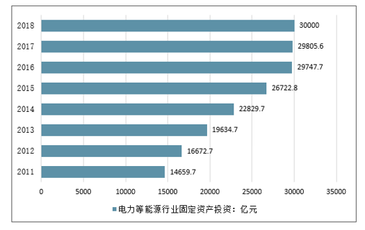 2011-2018年中国电力等能源行业固定资产投资及增长情况(单位:亿元,%)