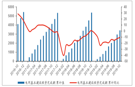 电网公司盈利能力下降,导致电网投资出现下滑。电网公司在投资时更为谨慎,低效与不必要的建设项目投资受到压降。截止2019年10月份,我国电网基本建设投资完成额为3415亿元,累计同比下滑10.5%。2019年12月,国家电网下发了《关于进一步严格控制投资的通知》,通知提出要贯彻供给侧结构性改革,降低实体经济运能成本,主动适应输配电价改革和降电价,需要严格控制电网投资,提升公司经营绩效。在严控投资方面,明确提出不得在投资计划外安排输变电资产租赁;不得以投资、租赁或合同能源管理等方式开展电网侧电化学储能建设;不再安排抽水蓄能新开工项目;亏损单位不再新增投资;大力压减短期效益不明显、架空线入地等投资费效比不高以及小型基建等生产辅助性投入。未来,国家电网预计将以应用价值为导向,以更为务实谨慎的态度进行投资建设。