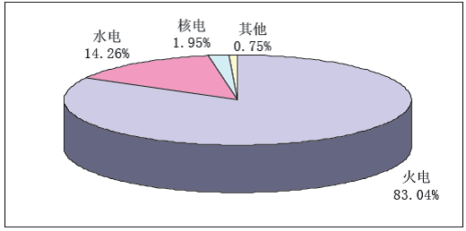 主要以火电(2000年占74%)、水电( 2000年25%)为主,核电、风电等其他能源发展为辅。电力行业在在“因地制宜,水火并举,适当发展核电,经济发展新能源”的产业政策下,优先发展水电,继续发展火电,支持热电联产,在沿海缺能省份发展核电。