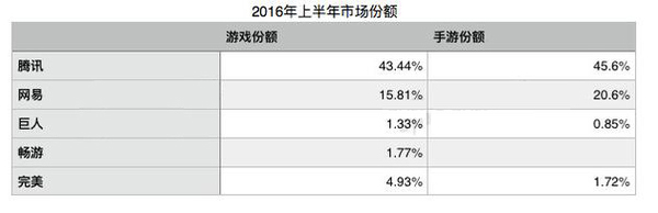 在端游大厂当中,巨人网络手游转型的成绩,只算是中等。2016年上半年,巨人网络手游营收占到了总营收的30.2%。完美手游营收占到了34.85%。畅游是20%左右,腾讯为56.1%,网易为52.1%。