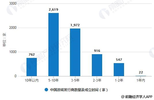 根据易观统计数据,中国有近七千家拥有游戏发行业务的发行商,其中,绝大部分成立历史为3到10年,即2009年之后的移动游戏发展初期。这说明移动游戏极大地促进了中国网络游戏产业的发展和繁荣,也是大部分发行商的主营业务。