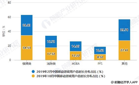 根据易观统计数据,移动游戏用户总时长分布占比中,主流关注度较少、新产品供应断档近两年的棋牌继续保持领先地位。
