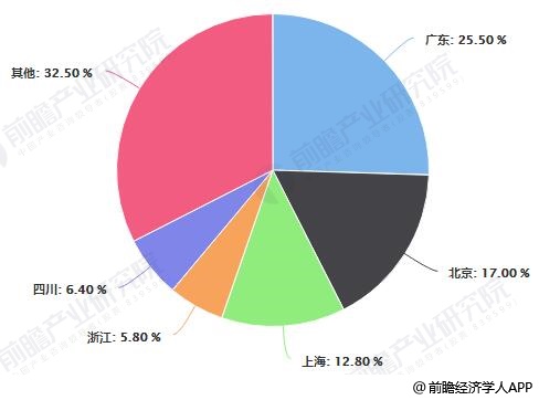 根据易观统计数据,广东是拥有最多游戏发行商的省份,数量占比为25.46%,比排名第二的北京高出8.44%。