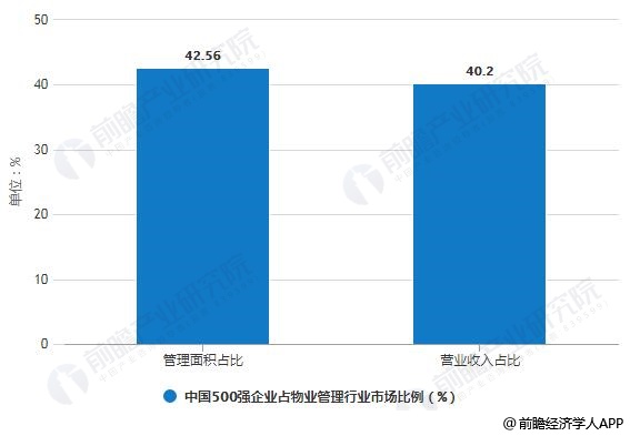 2018年中国500强企业占物业管理行业市场比例统计情况