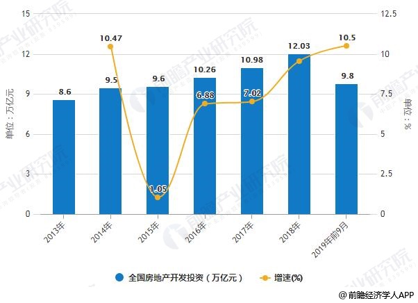 2013-2019年前9月全国房地产开发投资统计及增长情况