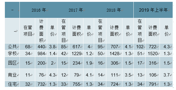 一方面,非住宅领域业务形态多元,不同业态之间差异极大。有些公共设施比如公园涉及到水面管理,机场涉及到机坪清洁,其面积的意义可比较性较低。当然不同形态之间物业费的差异也是巨大的。