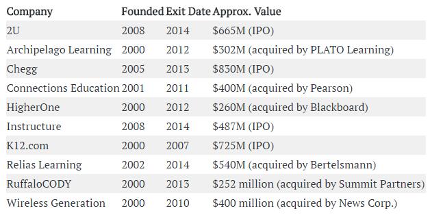 在教育科技行业中,一夜暴富的事情是很少见的。自2000年以来成立的所有教育公司中,只有10家公司以超过2.5亿美元的价格被收购。其中6笔交易至少花了10年时间才实现。