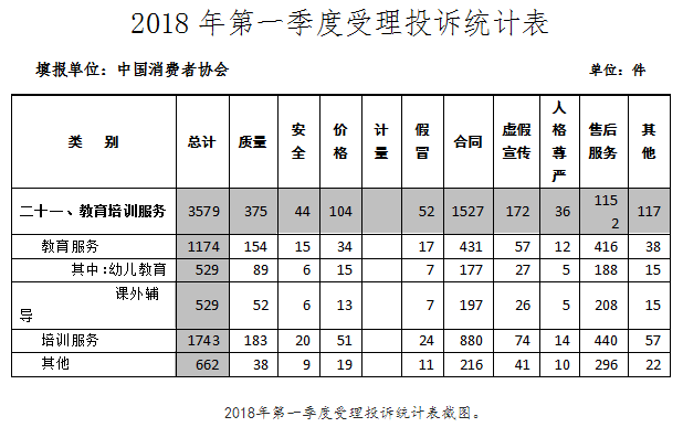 2018年第一季度全国消协组织受理投诉情况分析暨社会培训投诉情况专题报告