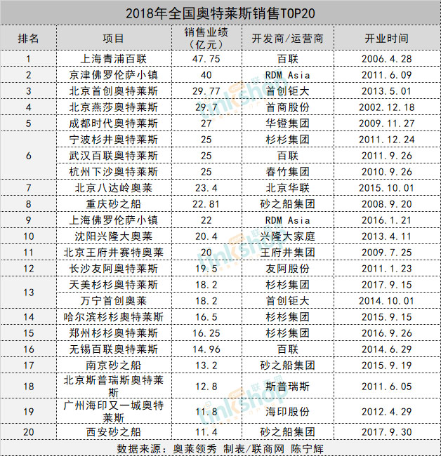 2018全国奥莱销售排名出炉 青浦百联四连冠