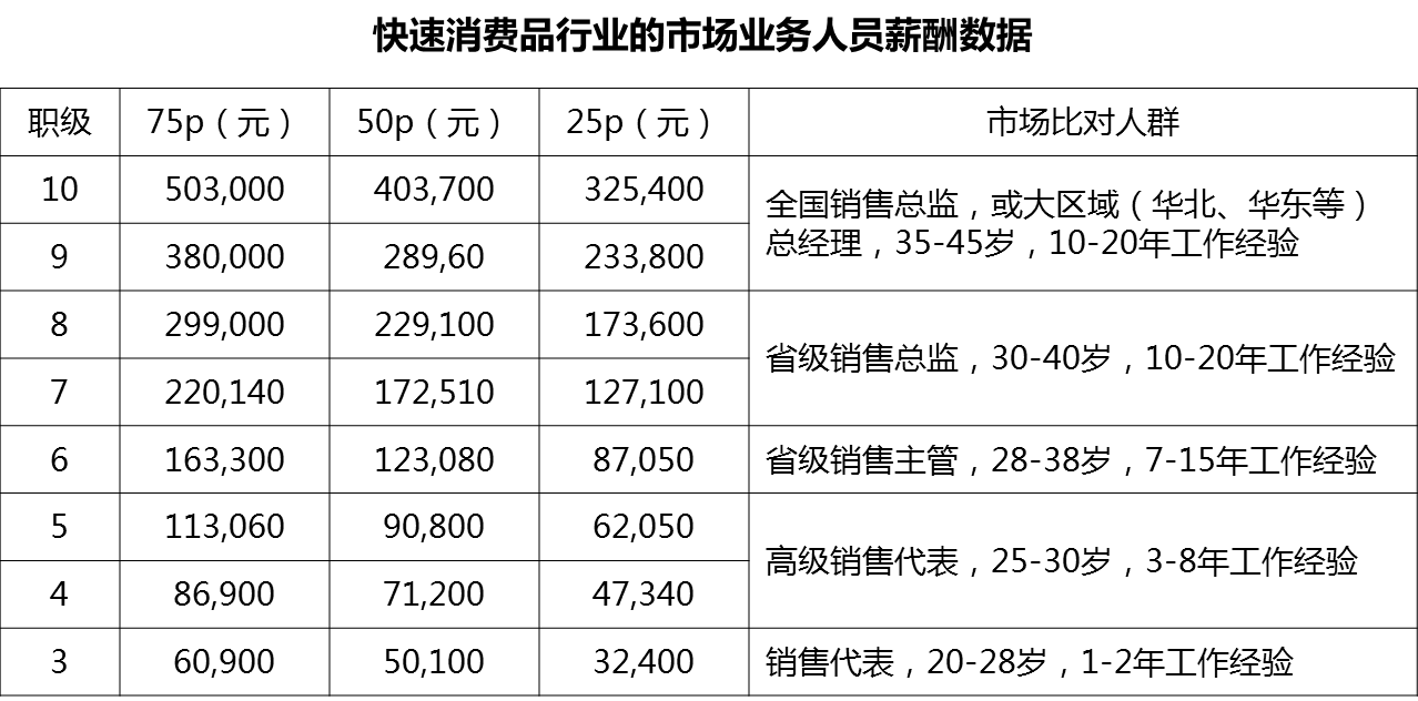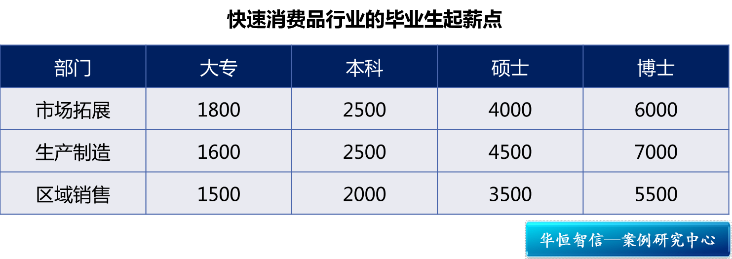 根据调查,快速消费品行业的薪酬起点较低,快速消费品行业的基层销售人员主要吸收毕业生,毕业生的薪酬范围大约在1500元-2000元之间,与行业内其他销售经理的薪酬差距较大。