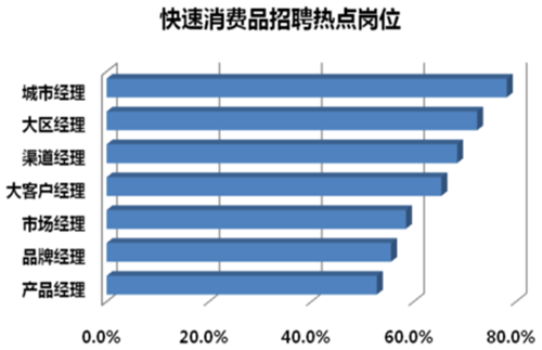 调查显示,快速消费品行业中销售类员工的涨薪幅度超过了平均值12.8%,涨薪幅度超过了其他职位。这说明企业重视对销售类岗位员工的培养。根据调查,75%以上的企业认为城市经理和大区经理是企业人才储备的重点,另外,渠道经理和大客户经理也是该行业较重要的岗位,分别有68%和65%的企业将这两类人员作为招聘的重点。