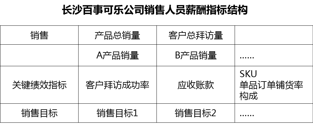 目前,有些快速消费品企业的薪酬方案一直将销售量、销售额作为绩效评估的重点,简单地根据销售量、销售额评价员工的工作成绩,而没有设计其他的反映员工综合能力的绩效指标,例如工作态度、责任心、顾客满意度等。而有些快速消费品企业虽然设置了众多销售考核指标,但是重点不突出,不易理解。例如在对长沙百事可乐公司销售人员薪酬调查发现,销售人员的奖金考核项目由销量、绩效关键指标以及销售目标组成,其中销售根据产品总销量和客户拜访量分类,同时根据不同产品进行销量分类;KPI 指标按照销售拜访成功率、应收帐款和 SKU单品订单铺货率构成;销售发展指标会根据每个月的销售档期不同而设置 1 至 2个销售发展目标,因此,销售考核指标众多,销售代表不易理解且重点不突出。