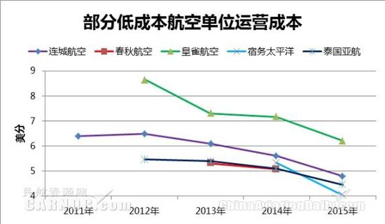 低成本航空机队达到一定规模后方可有低成本优势,将部分低成本航空单位运营成本转换为以美分为统一单位进行比较,考虑不同时期各国货币汇率的变化,不难看出随着航空公司规模的扩大,单位运营成本应呈逐步下降的趋势,当燃油成本下降时,这样的趋势将更加明显。长安航空需要快速将机队规模发展壮大以降低成本。考虑长安航空以海航西安为班底组建,在独立运营前已有一定规模,且拥有海航集团的资源优势,长安航空机队短期内高速发展应不难实现。