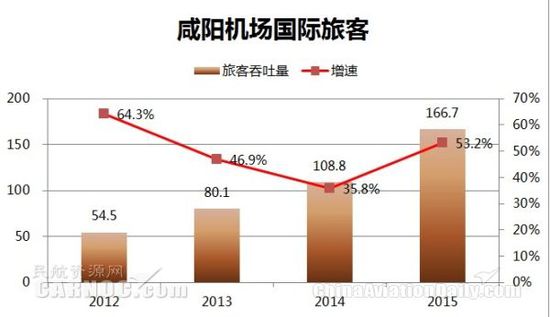 随着我国出境游的繁荣发展,咸阳机场出境旅客亦呈现高速增长。2015年西安空港进出境旅客166.7万人次,同比增长53.3%。笔者在《西安国际航线格局变迁直飞+低成本将成主流》有所分析。但短期内长安航空作为独立的航空承运人尚不能开通国际航线,在拥有一定的国内航线网络规模后可以向民航局申请扩大经营范围。