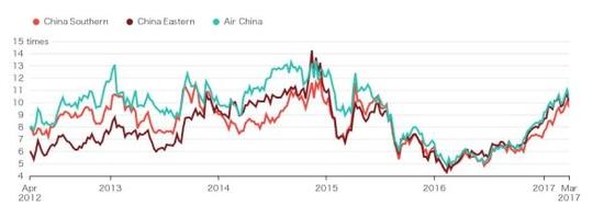那些预计中国三大航企的股票将会继续保持类似估值水平的人,他们低估了自喷气机时代开启以来造成航空业内赢家与输家分隔的成本与竞争问题的影响力。中国三大航企的估值水平不会永远保持在类似水平上。