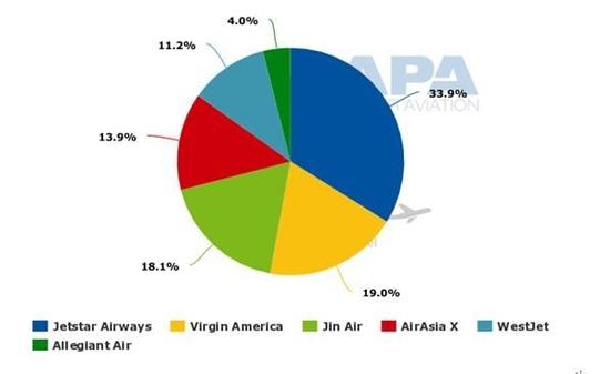 而在回头看夏威夷市场。就目前来看,捷星航空(Jetstar Airways)是夏威夷LCC市场上运力最大的航空公司,每周由B787-8运营5班悉尼-火奴鲁鲁和3班墨尔本-火奴鲁鲁,提供5360个往返座位。旺季时捷星将上调火奴鲁鲁的航班量至每周11班。另一家亚太地区的LCC便是韩国真航空(Jin Air),真航空是大韩航空全资子公司,目前由B777-200ER型飞机执飞每周5班的首尔仁川-火奴鲁鲁航线,每周提供4000个往返座位,但真航空此条航线的运营是季节性的。此外便是美国籍LCC,其中维珍美国(Virgin America)目前仍被归类为LCC,该航空公司仍处在被FSC阿拉斯加航空(Alaska Airlines)收购的进程中。