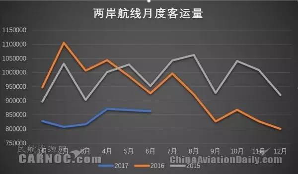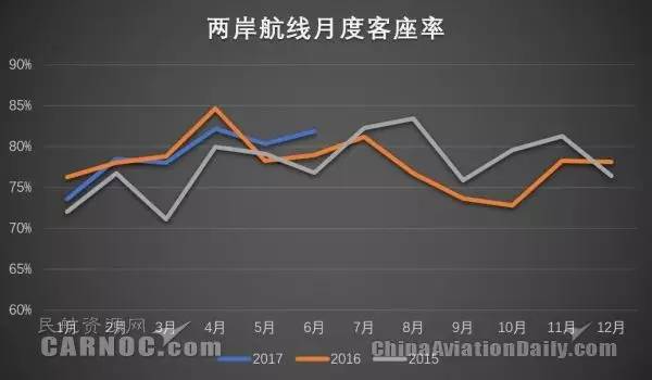 由于两岸航空公司对航班量与座位投放有所调整,两岸航线客座率在2017年上半年已有所好转,近三个月已超过80%。