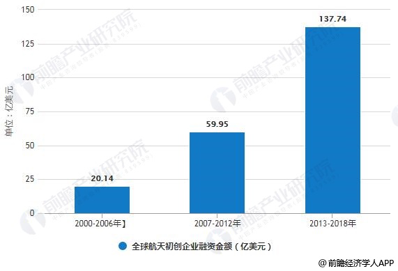 2000-2018年全球航天初创企业融资金额统计情况(单位:亿美元)