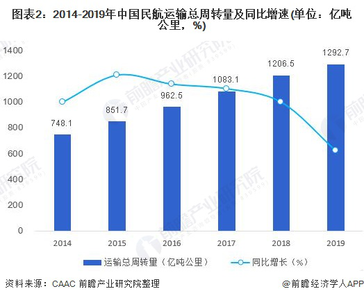 2019年,全行业完成运输总周转量1292.7亿吨公里,比上年增长7.10%;旅客运输量6.6亿人次,同比增长7.9%。