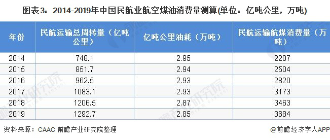 按照中国民用航空业航空煤油消耗量=当年民航吨公里油耗*当年民航运输总周转量测算;