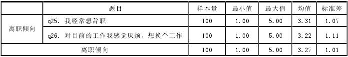 根据相关数据分析可知:我国高新技术知识型员工离职倾向的均值为 3.27,所占比例比较高,超过2.5的平均值。其中,高科技术术知识型员工经常想辞职的均值为3.31。员工对目前的工作感到厌烦,偏向于更换新工作,得分为3.22。说明员工对他们工作的厌烦感比较强烈,并且拥有强烈的离职想法。这些可以推测出高科技术企业对员工的激励方面存在缺陷和不足。