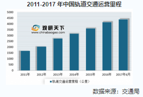 近20来年,随着改革开放的推进,我国经济高速发展,城市化进程加快,大城市数量迅速增加,我国轨道交通迅速发展。根据数据显示,。截至2017年6月,我国轨道交通累计运营里程4400公里,总里程领跑世界。