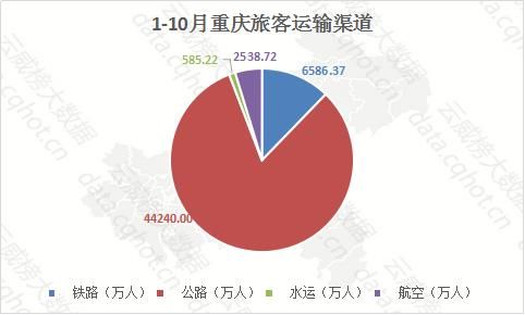 1-10月,重庆运输旅客共53950万人,其中公路、水路运客量分别为44240万人、585万人,同比下降2.4%、16.8%;铁路和航空运输增长较快,运客量分别为6586万人、2538万人,同比上升21.0%、9.9%。