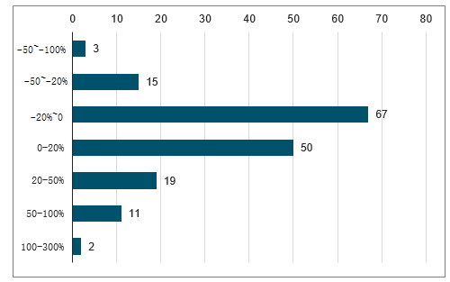 167家汽车上市公司中,1)营收方面,2019前三季度有80家上市公司营收同比增长(中报有71家),87家上市公司营收同比下滑(中报有96家),2019前三季度营收增速的中位数为-1%(中报为-3%)。总结来看,2019年单Q3营收同比增速表现较上半年略有好转,营收高增速区间公司增多。