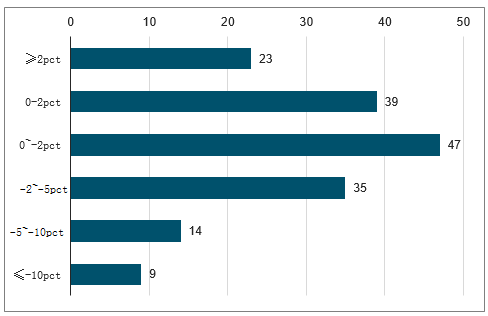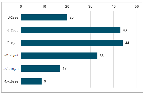2)归母净利方面,2019前三季度有55家上市公司归母净利同比增长(中报有50家),113家上市公司归母净利同比下滑(中报有117家),2019前三季度归母净利增速的中位数为-23%(中报为-21%)。总结来看,2019年单Q3归母净利中枢仍然有较大幅度下滑,但利润高增速区间公司增多。