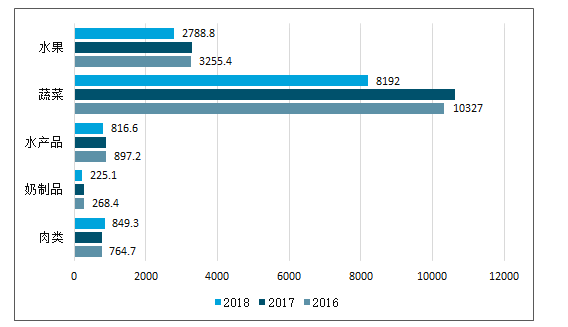 2016-2018年山东省主要冷链物流农产品产量(单位:万吨)